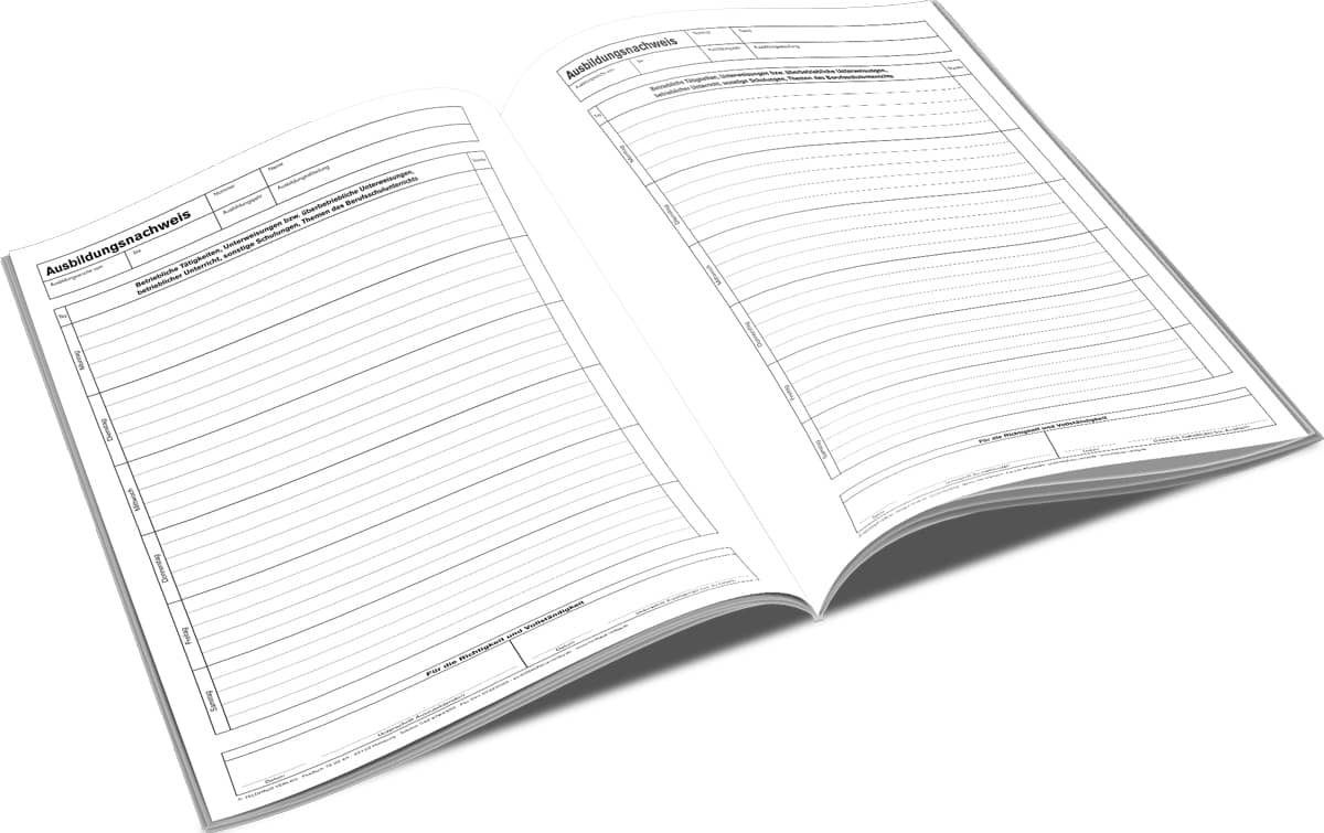 Für kaufmännische und gewerbliche Berufe. Loseblattform. Wöchentliche Eintragung von Mo. - Sa. Reicht für 1 Jahr.