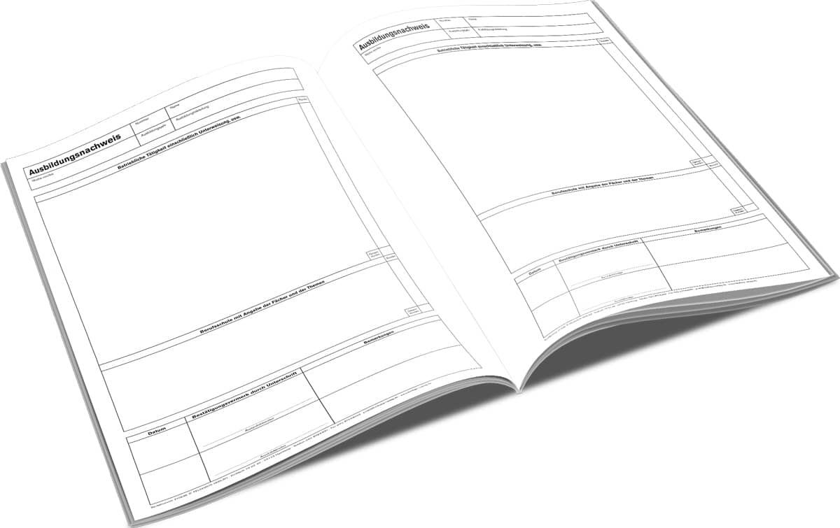 Für kaufmännische und gewerbliche Berufe. Loseblattform. Wöchentliche, zweiteilige Eintragung. Reicht für 1 Jahr.
