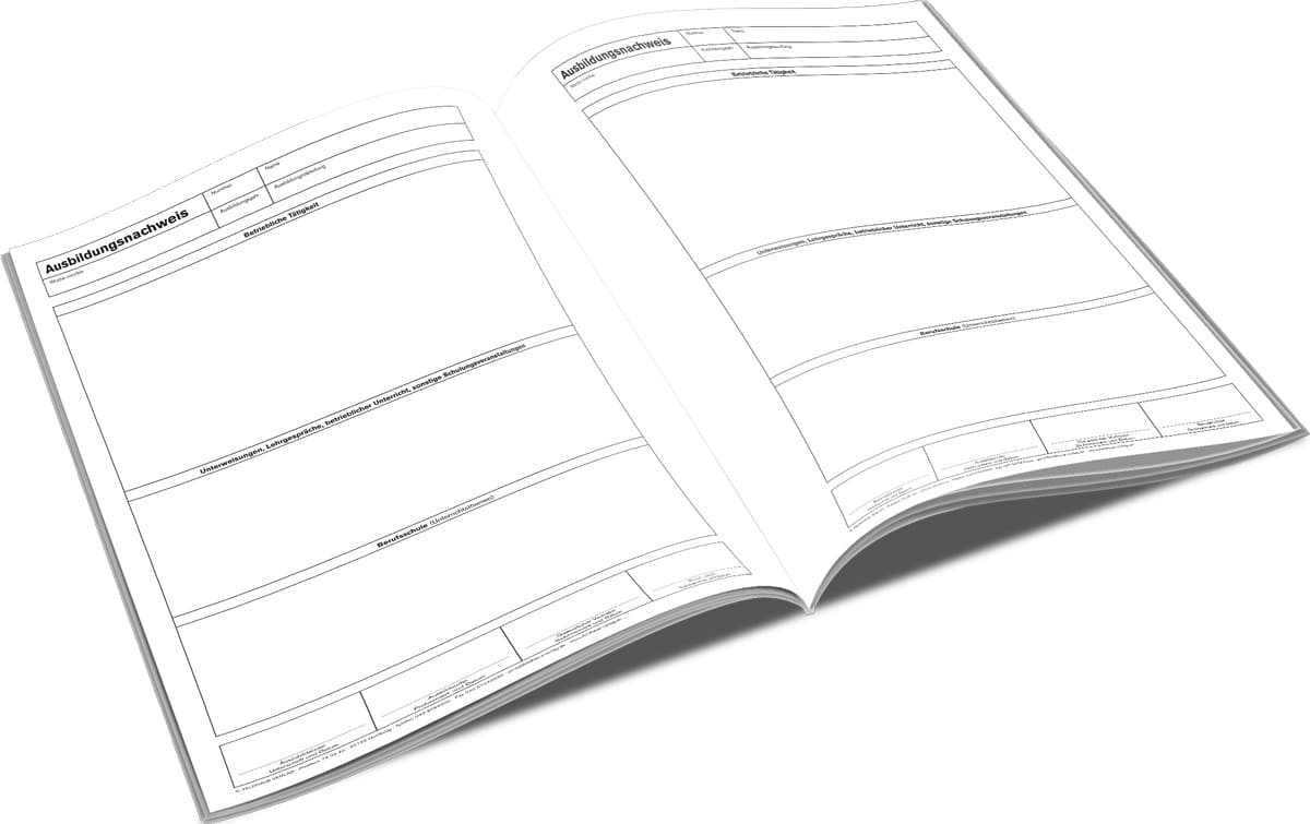 Für kaufmännische und gewerbliche Berufe. Loseblattform. Wöchentliche, dreiteilige Eintragung. Reicht für 1 Jahr.
