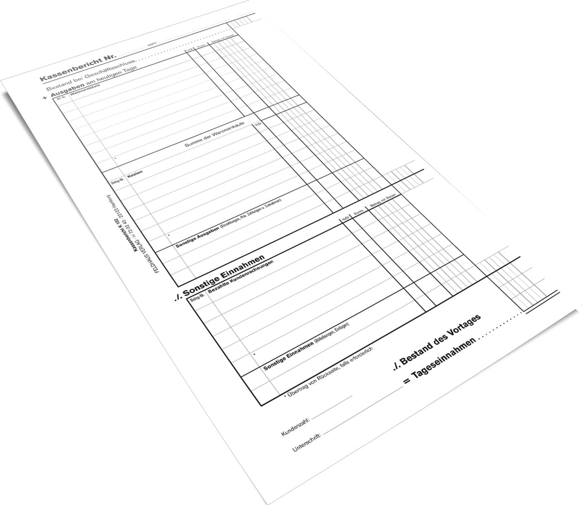 Block mit 50 Blatt ohne Durchschlag, ohne MwSt.-Spalten, DIN A4. Für Betriebe ohne Registrierkasse - mit Umkehrrechnung.